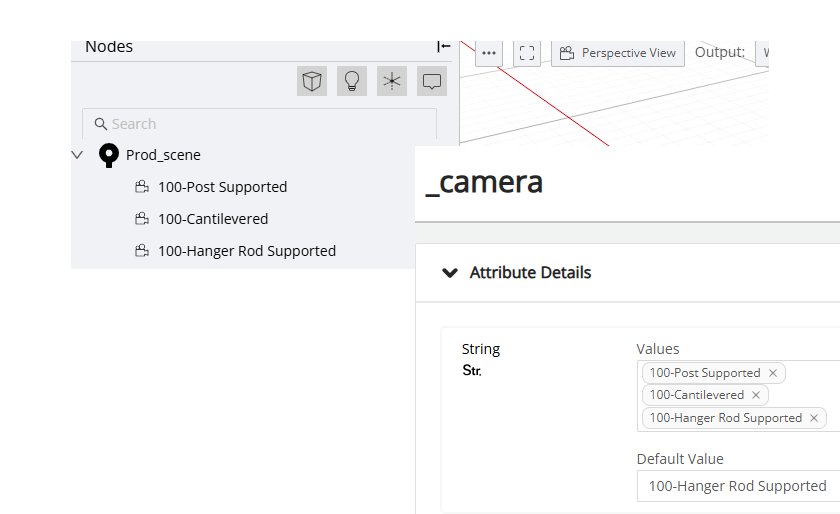 I have created a string attribute named _camera with the following values: